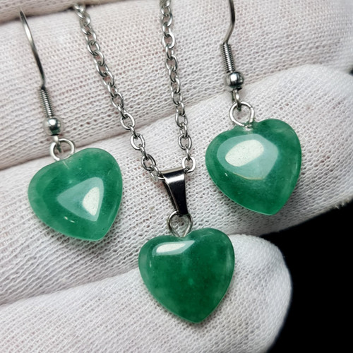 ست گوشواره و گردن آویز ظریف سنگ جید معدنی همراه با زنجیر استیل کد 30022