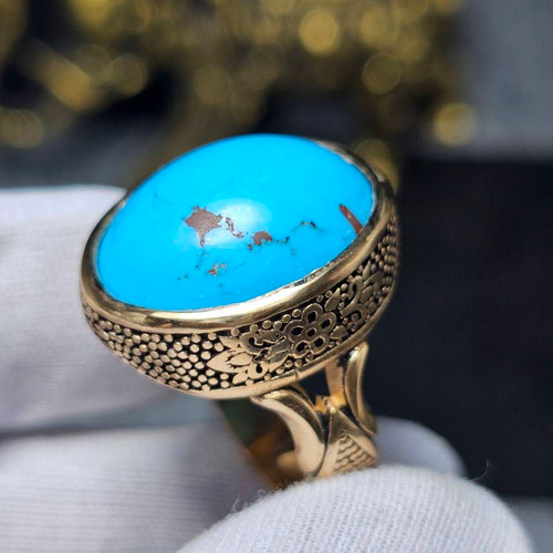انگشتر طلا روس با سنگ فیروزه معدنی کد 35190