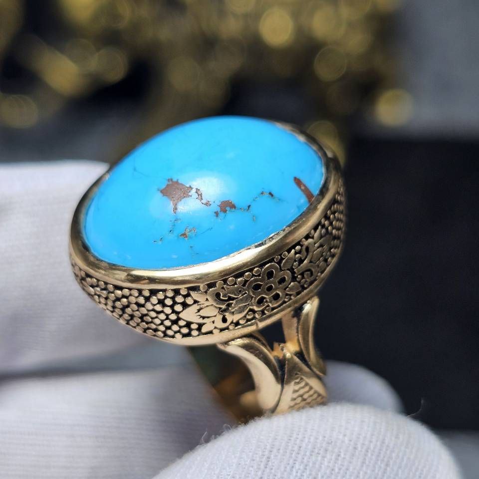 انگشتر طلا روس با سنگ فیروزه معدنی کد 35190