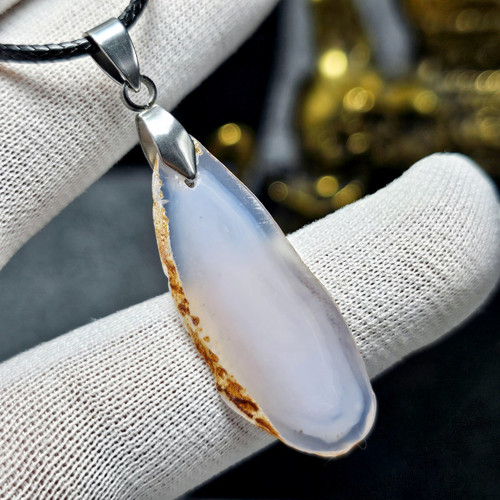 آویز گردنبند اسلایس سنگ طبیعی عقیق سلیمانی معدنی خراسانی(ترک طبیعی دارد ) کد 34146