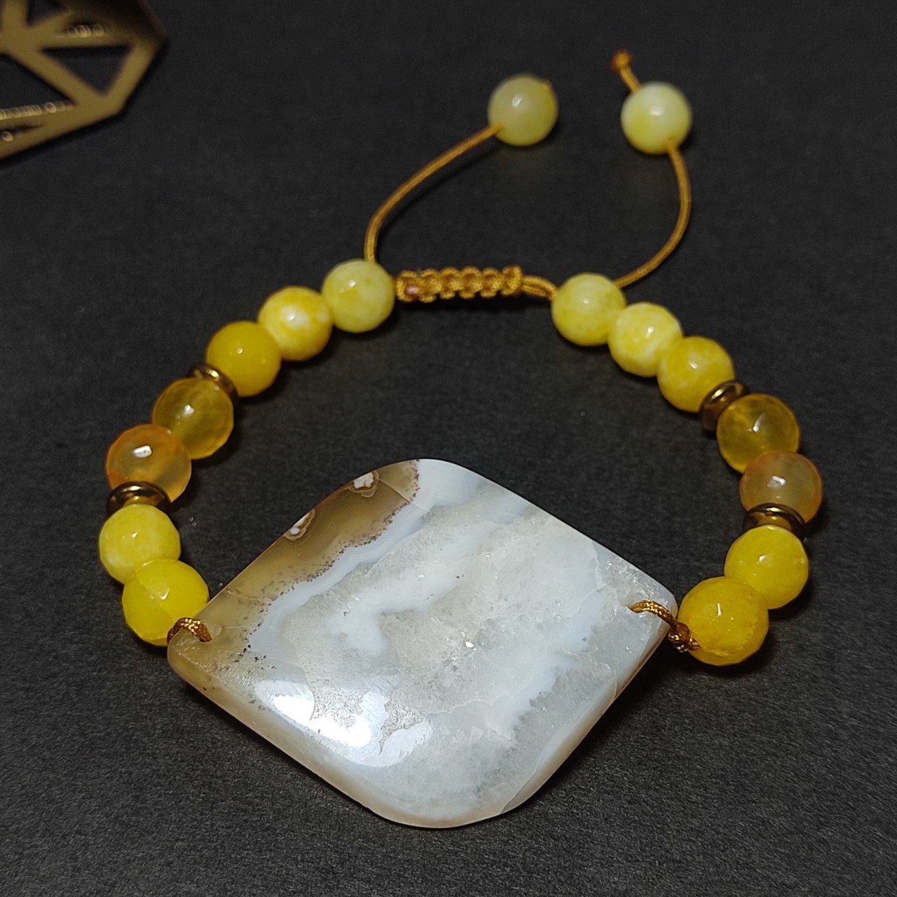 دستبند سنگ عقیق معدنی خراسانی با مهره های جید معدنی کد 34775