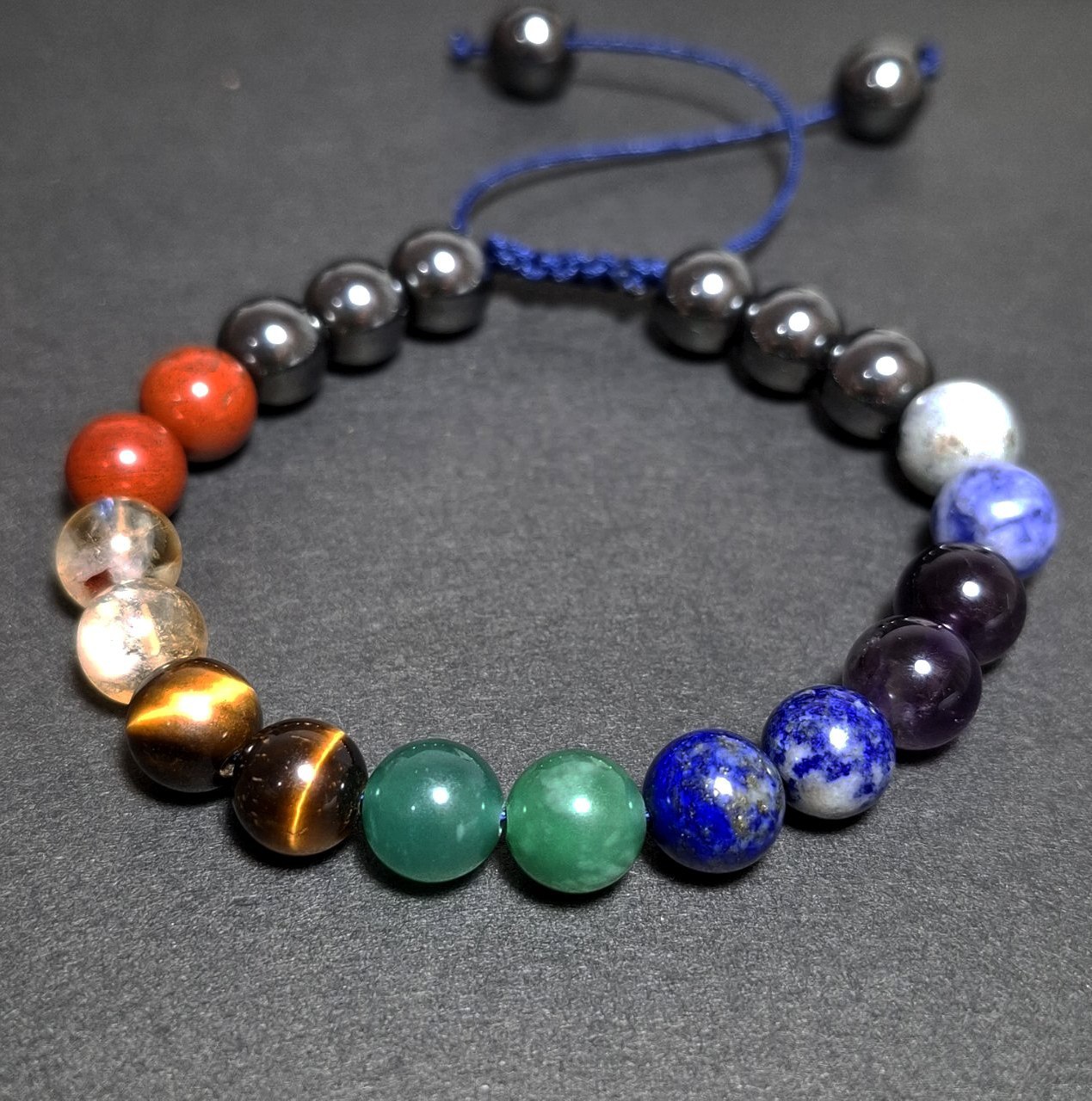 دستبند سنگ های هفت گانه و حدید معدنی کد 34789